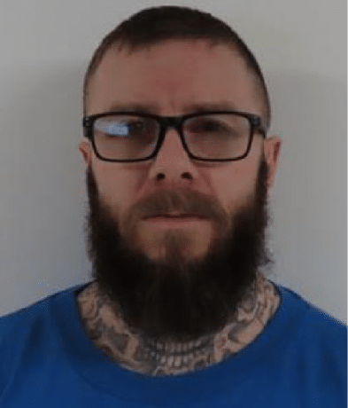 Blanchard is described as 5’6”, 140 lbs, brown hair, green eyes, with a long dark beard. He was last seen wearing a green and white ball cap, grey hooded sweatshirt, black pants with three white stripes along the sides, grey shoes with a red stripe, carrying an over-the-shoulder black bag, and black rectangular glasses. Blanchard has several tattoos, one of which is on the right side of his neck of a cross with lettering in a rectangle.